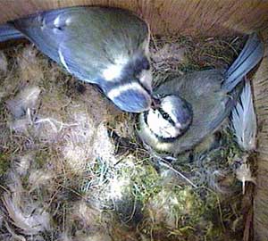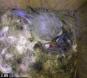 Ten minutes later Bob is back with what looks like a tiny green caterpillar - just the right sort of food for the young chicks.