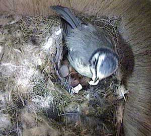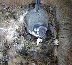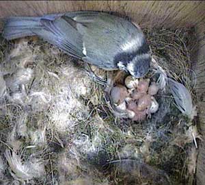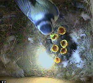 Jess's chicks have survived another night. Here James is feeding one with a little green caterpillar.