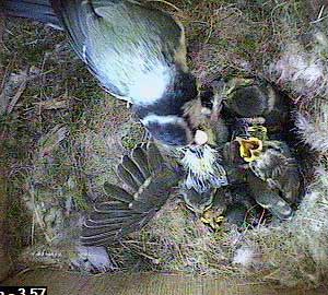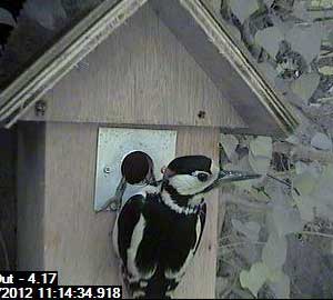 This morning we've had another visit to Box1 from the woodpecker. Fortunately, he again could not reach the chicks.