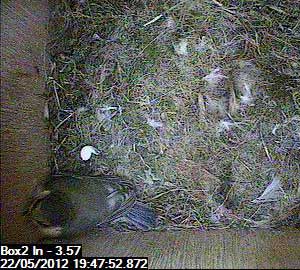 Again, Mum comes back to the nest box and this time she has brought some food for the chick.