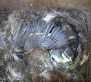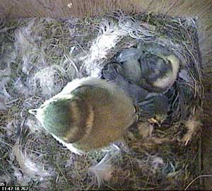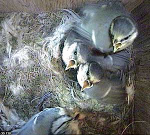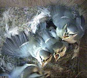 The chicks in Box1 hatched out on 10th May so today is day 18 - the earliest after hatching we have ever had chicks fledging.