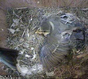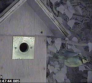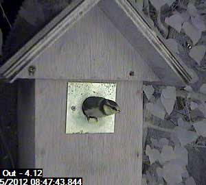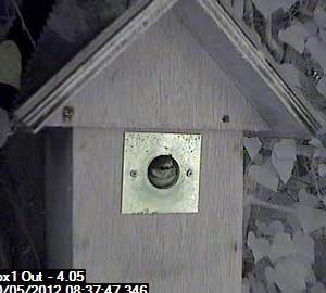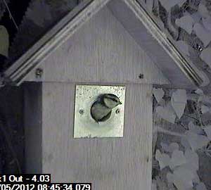 ... and nearly ten minutes later it is back again. Each time it gets that little bit further out of the nest box before it all becomes too much.