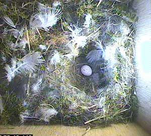 Sally has laid her first egg! Here she seems to be looking at it and wondering where it came from! I wonder whether this is her first year as an adult, which would make this the first egg she has ever laid, or is she an old hand?