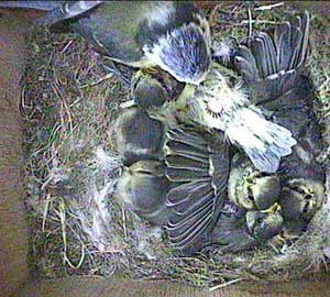 An unusual shot of the chicks in the middle of the afternoon. It must be siesta time!