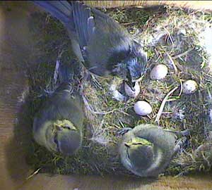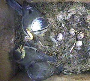 We have an example her of parental behaviour that I'm sure I have seen before. Sally brings a mealworm and starts to feed it to one of the chicks.