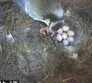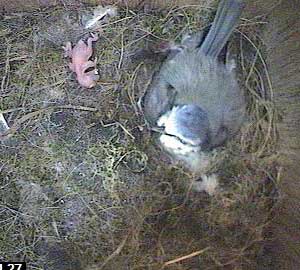 Three hours later and Kelly can be seen to be eating egg shell again. This must be chick number four.