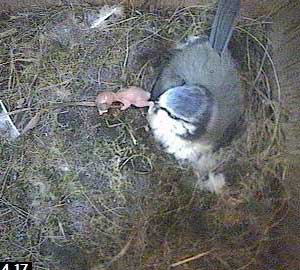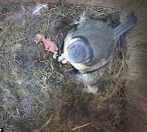 Following this, Kelly drags the chick towards the nest cup, but it appears totally unresponsive.