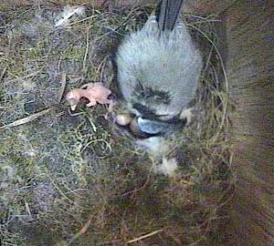 So that's the state of affairs at the end of the day. Four eggs hatched and three surviving chicks. There are still four eggs to go. Probably most of these will hatch out overnight.