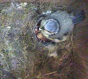 Here Kit is trying to tempt it with a morsel of food - but to no avail. If it is not yet dead, I think it is as good as dead. I wonder how it got out of the nest cup in the first place?