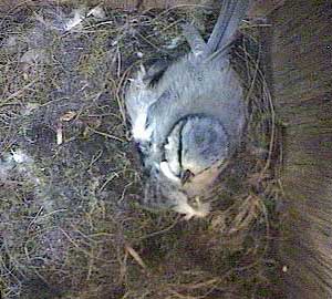 It is now 8.10am following morning, and the chicks have hardly moved overnight and are now clearly dead. Neither parent has visited the nest box since we first switched on.