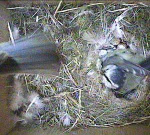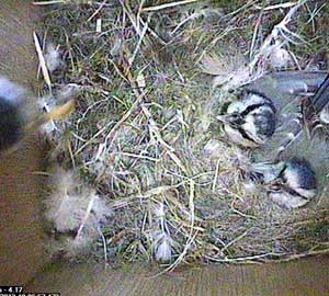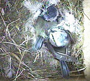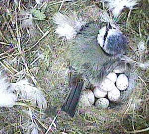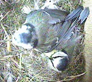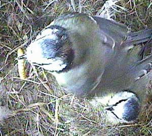 This was what we saw - the two females fast asleep together in the nest box - and both sitting on the eggs! They seem to be co-operating beautifully!