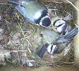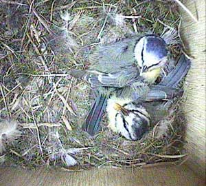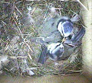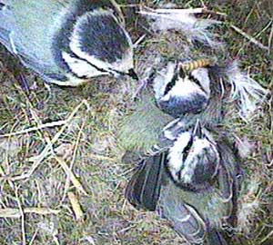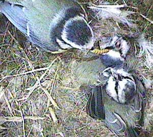 I'm not quite sure whether this is Sally or Scruff with the mealworm. Whichever of them it is, they again feel the need to take it outside to eat.