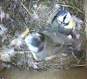 The two of them both try to take the mealworm for themselves. It's all very ladylike though, there is no actual fighting at all!