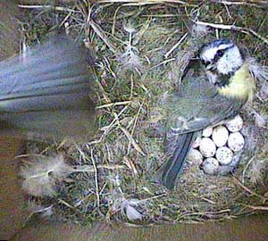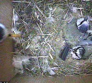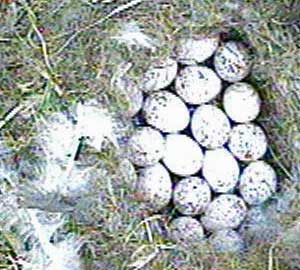 This shot was taken shortly after seven o'clock. There is no sign of any eggs hatching. Perhaps the cold weather and the fact that it is difficult for one bird to cover all the eggs, means that incubation will take longer than usual.