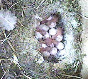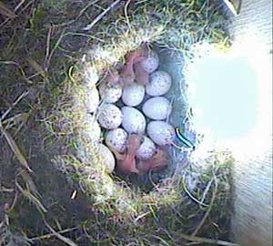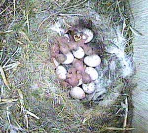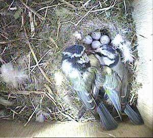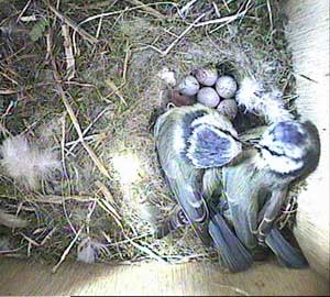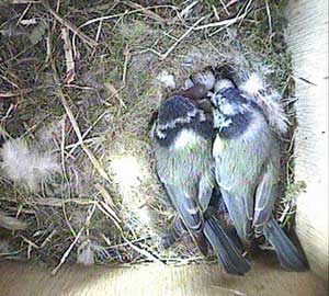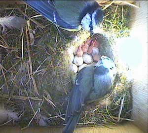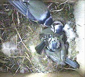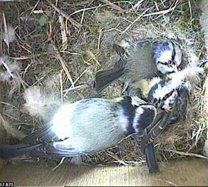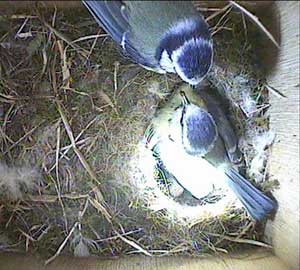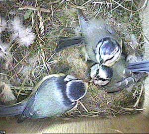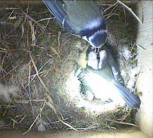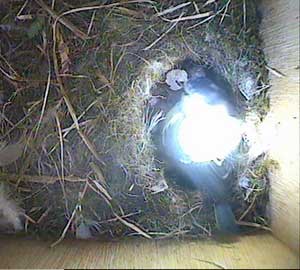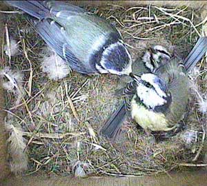 ... and in the end it looks as though it is Scruff who feeds the chicks and Sally who is keeping a close eye on what is happening. There's no storming out of the nest box in a paddy here!