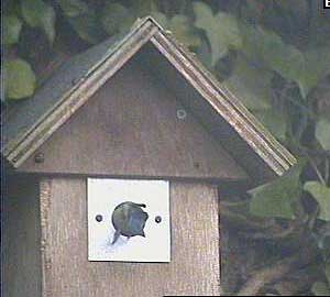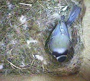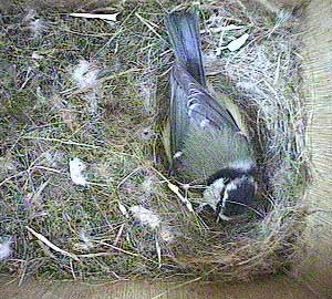 Although she had settled down on the nest cup, she did not seem to be at ease there and she kept peering out of the nest box hole as though she was expecting something to happen.