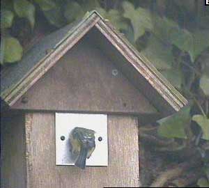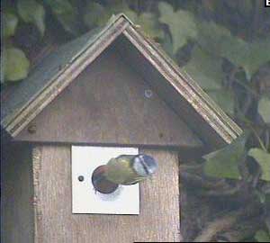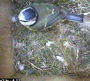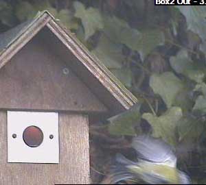 Last year we had a most unusual happening in Box2, namely that two females both laid eggs in the nest box and both females and the one male looked after the chicks when they hatched out. This year we have again been surprised to see that two females - at least we think it is two females - are taking an interest in this nest box. (And no, this is not an April fool!)