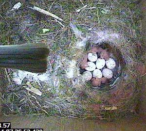 During the day, several more of Pippa's eggs have hatched. Until they start clamouring for food it is difficult to count them. However, I think you can see 4 unhatched eggs so the most number of chicks there could be is 7.
