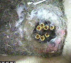 At least Pippa's chicks in Box2 still look to be in fine form. Seven gapes clearly visible here. Interestingly, their eyes do not seem to have opened yet.