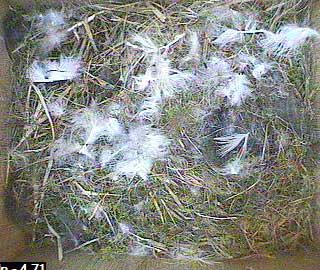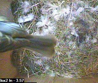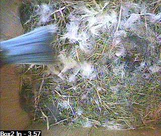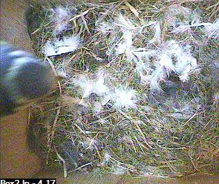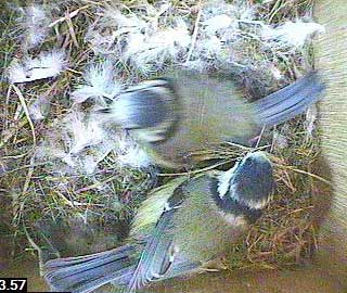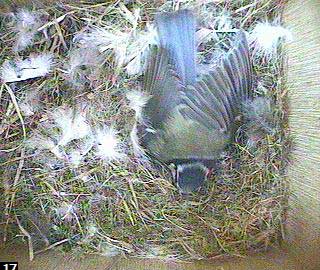 Suddenly another bird entered the box. In normal circumstances one would assume that this is the male, but this bird had some hay in its beak - and males don't help to build the nest - what is going on?