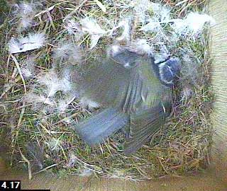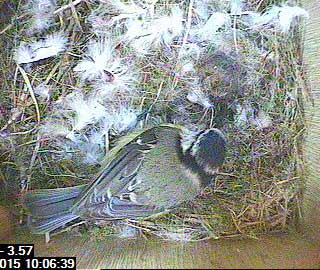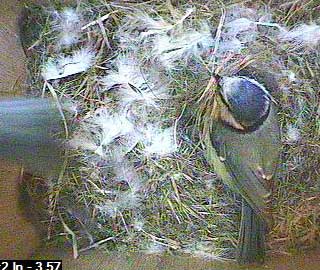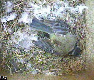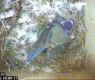 Over the next few minutes it sat in the nest cup doing all those things that female bluetits do to form the nest cup.