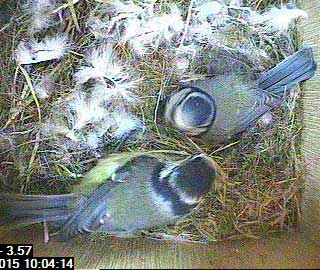 It was only today that we realised that something very odd was happening in Box2 - again! You may remember that in 2013 two females and one male shared this nest box laying 20 eggs of which 12 eventually fledged. That year the first female had laid about 6 eggs before the second female started laying so we didn't realise that there was anything odd going on until later.