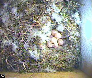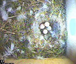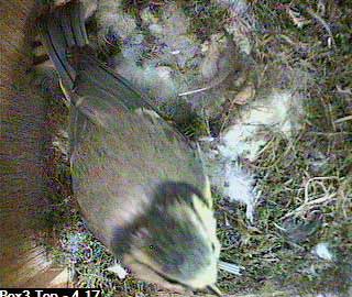 It is now three days since we first saw an egg in Box3 and this is the first sight of eggs since. There is clearly more than one egg here but I can't see how many there are in total.