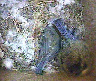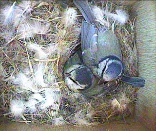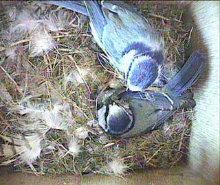 This picture was taken well after dark and shows that both females are now roosting in the nest box. Another sign that Rosie and Suzie have reached a working agreement!