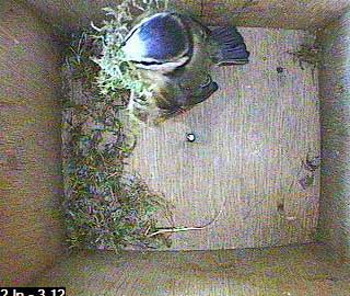 We start with a nesting wriggle. You can see that there are already a few pieces of moss in the box.