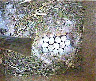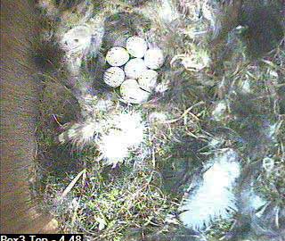 This is Box1 where there appear to be 8 eggs, that last of which was laid on Tuesday 28th April. This means that they should start hatching around Sunday 10th May.