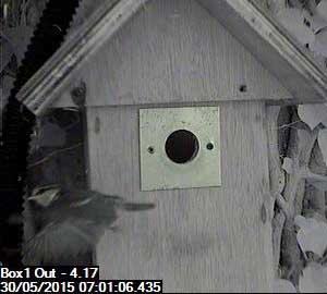 Today, the chicks in Box1 start to leave the nest box. One went first thing this morning and the second last thing this evening.