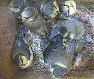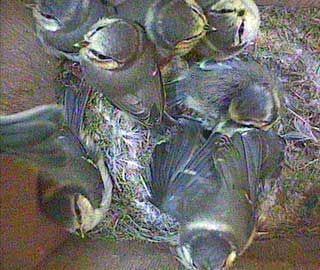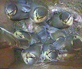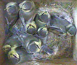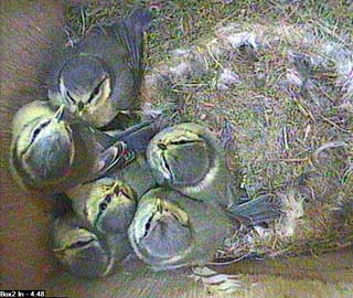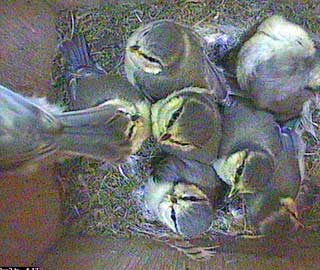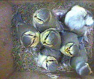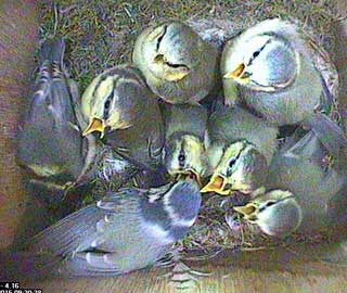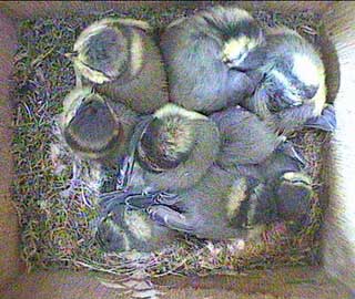 At 9.24am they start to wake up again so you can see that there are still 9 chicks in the nest box.