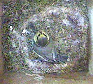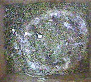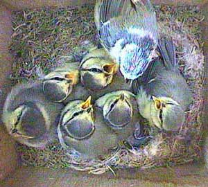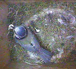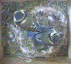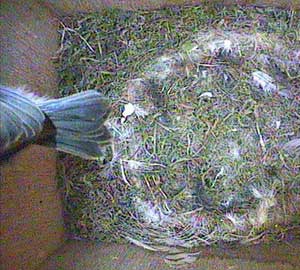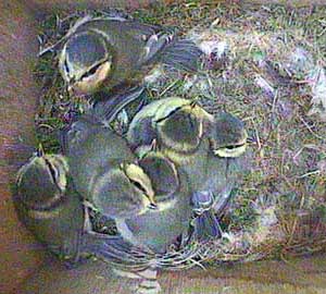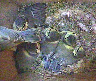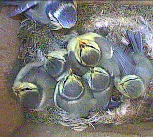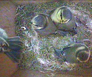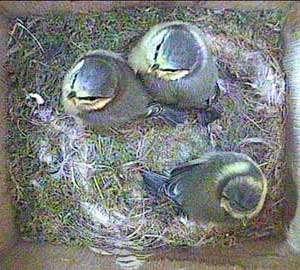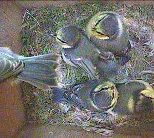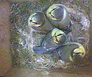 It is now nearly a quarter to 10 and the six chicks are still in the nest box and looking as though they will stay there some time.