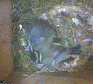 There is now another brief lull. This time it is only about 15 minutes rather than the 40 minute gap after the first three chicks had fledged.