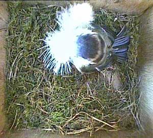 It looks as though Spikey thinks the nest is nearly finished. Feathers are normally only brought to the nest box in order to provide a comfortable base for the eggs to hatch out on.