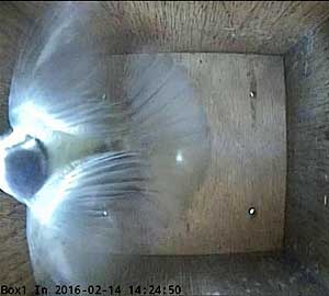 Box2 has also had a visitor today. Initially I thought this was going to be a nesting wriggle, but eventually I have decided that it was just pecking at the hole in the middle of the floor.