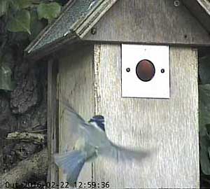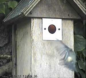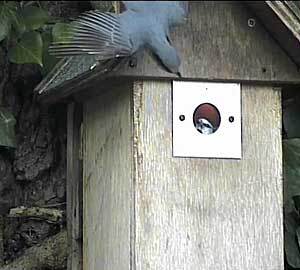 Of course, the nuthatch cannot see this, but inside the box, the bluetit is displaying like fury!