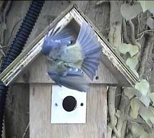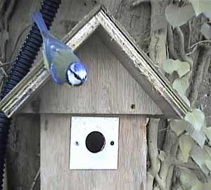 This is the start of another common sequence. The male bluetit as gone into the nest box ...
