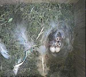 This is the second chick to hatch out. Having reached this stage, we would normally be optimistic about the prospects for this brood, but since 24th May there has been no sign of Patch, and there is no way Poppy can rear these chicks by herself!