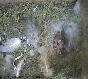 I say 'amazingly' because as well as Patch having disappeared, Poppy doesn't seem to be very good at getting food for her remaining chicks. They must still be living off their fat from their time inside the egg.