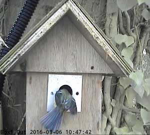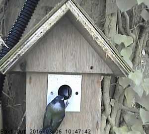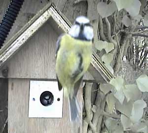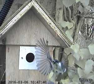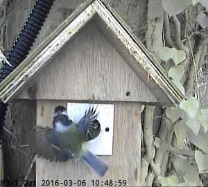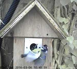 The bird inside immediately came to the hole itself and this caused the newcomer to retreat a little.