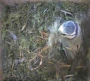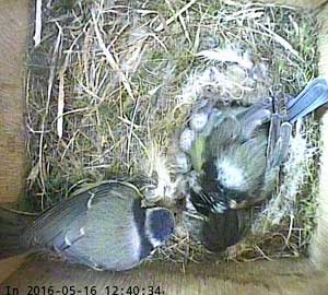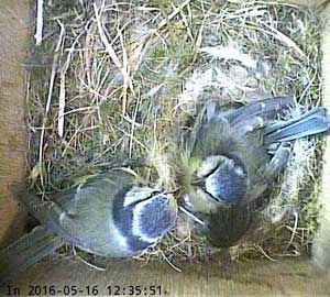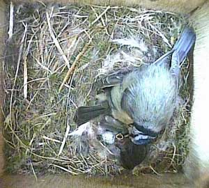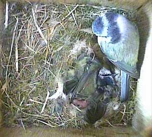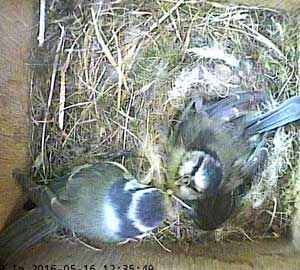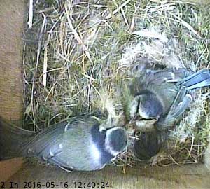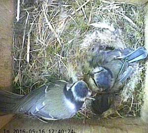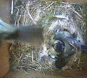 Here she is about to enter the box again with something small in her beak.