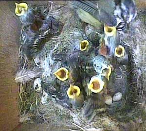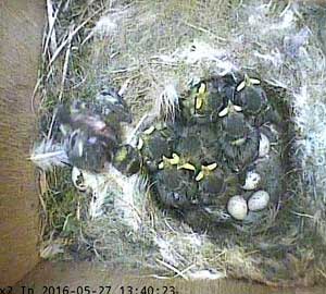 The reception a parent faces when bring food to the nest box is getting pretty fierce!