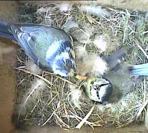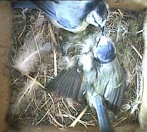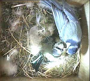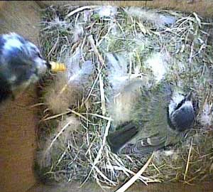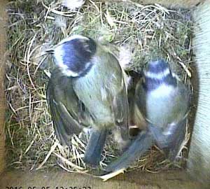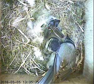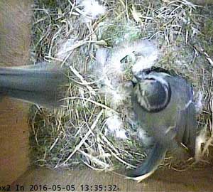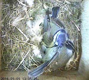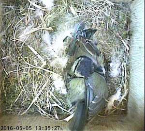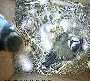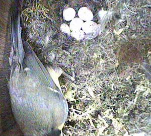 In Box3, Chris now has 6 eggs. I wonder how many more she will produce? In our experience, bluetits seem to produce from 6 to 10 eggs each brood, though sometime it is more than this. Our Field Guide suggests the number is normally 7-12,sometimes 5-16, though we have never had more than 12 produced by one female.