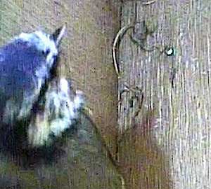 Soon after, Gerry came in to the nest box, and to make it clear she was still in nest building mode, she did a nesting wriggle for us.