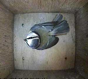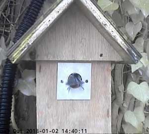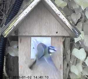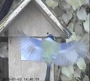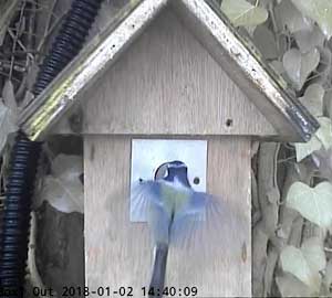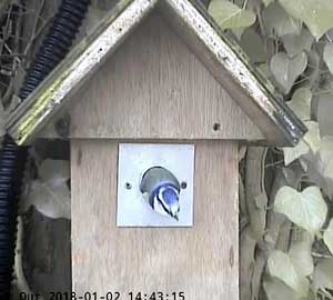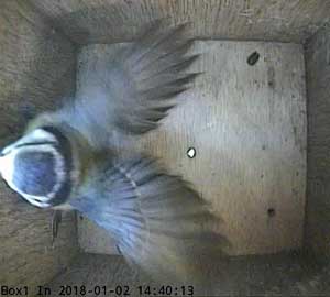 It looks as though Box1 has already been taken. Here a bluetit approaches the box . . .