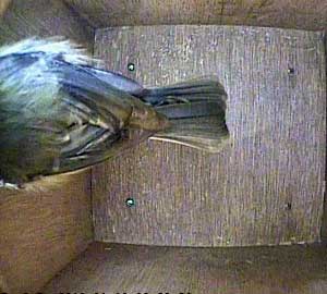 It also reminds me a bit of a bird we had in 2003 and again in 2004 which we called Fluffy because of her very fluffy plumage. I'm sure it can't be her because bluetits don't live that long, but it might be one of her offspring!