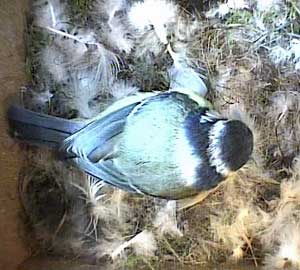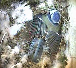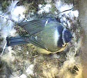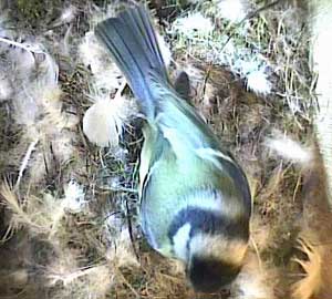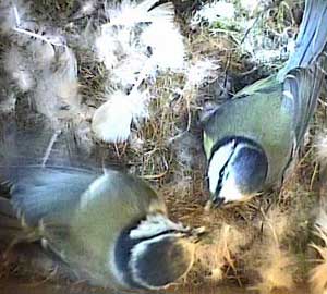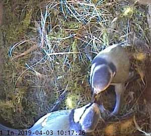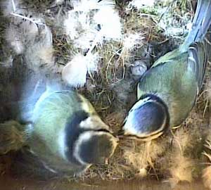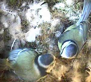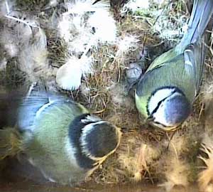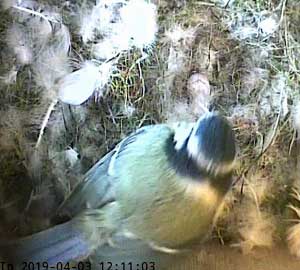 Perhaps it is surprising, but the bluetits that occupy our nest boxes never seem bothered by the lighting arrangements.