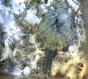 Nearly 3 hours have passed since the above sequence was recorded. Bella appears to have covered up her egg and here she is with more fluffy feathers.