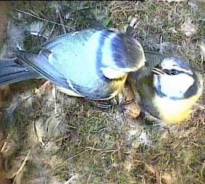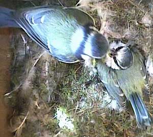 Ben certainly looks after Bella very well indeed. Over the years we have observed a wide range in the frequency with which male bluetits bring food for their incubating partners. Ben is at the very solicitous end of the scale.